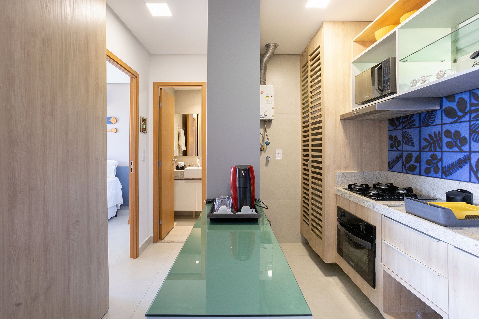 Condomínio excelente e o flat é bem novo, completo e acomoda muito bem!