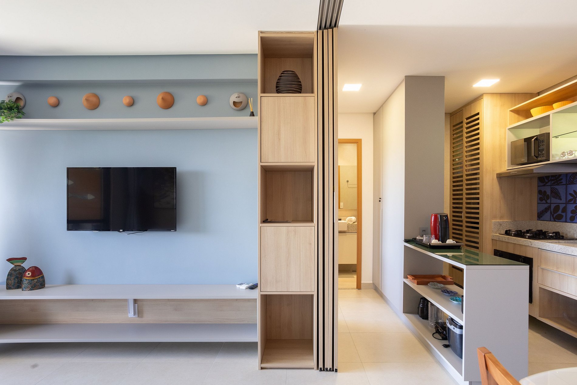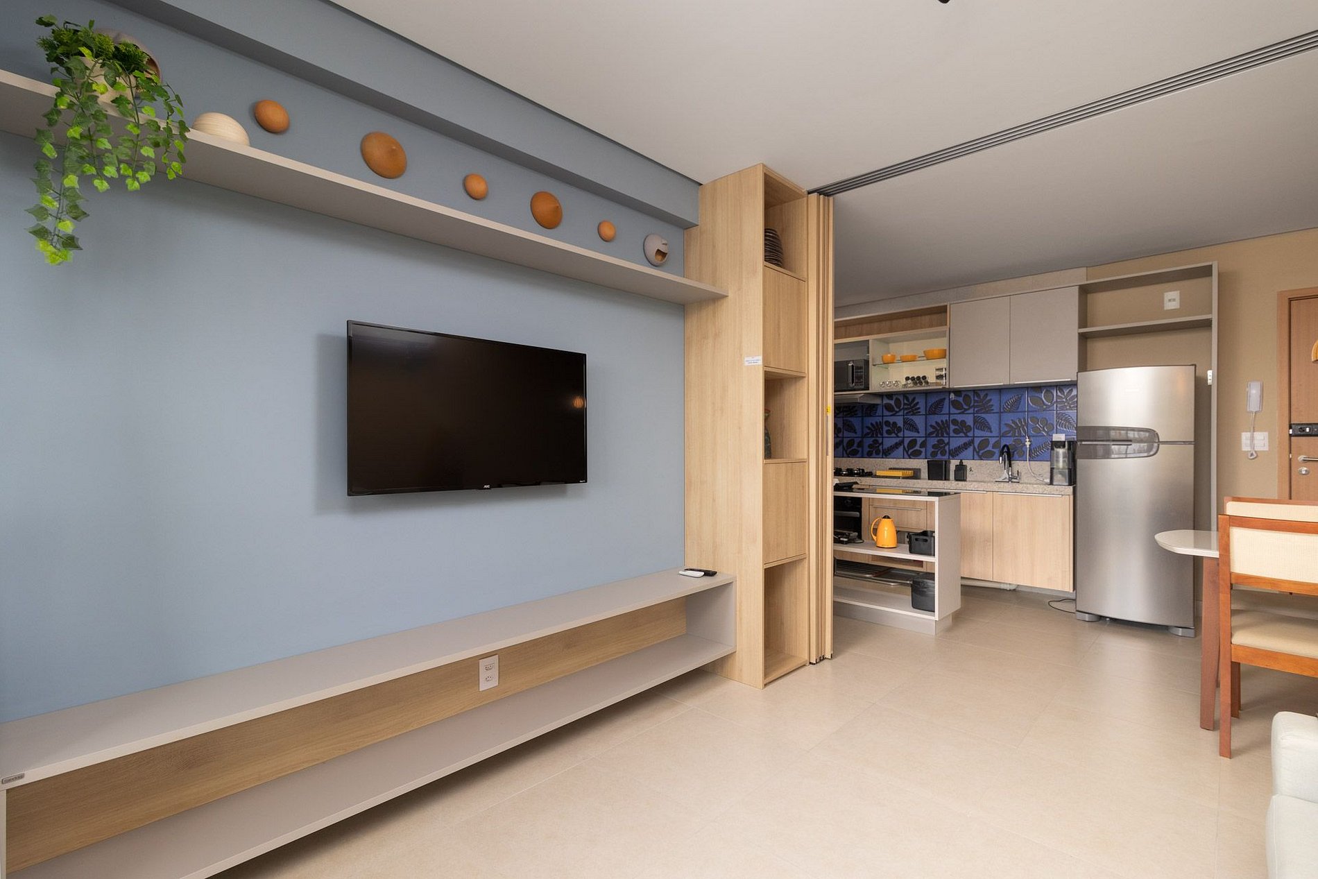 Condomínio excelente e o flat é bem novo, completo e acomoda muito bem!