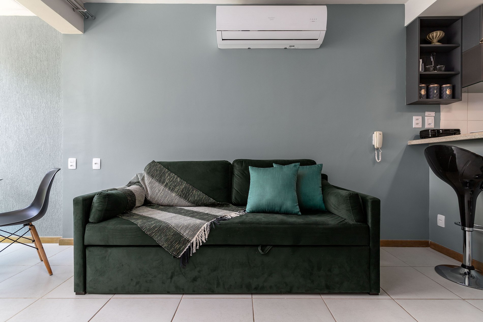 acomodação confortável, bem decorada e bem localizada, com todos os utensílios necessários para a estadia