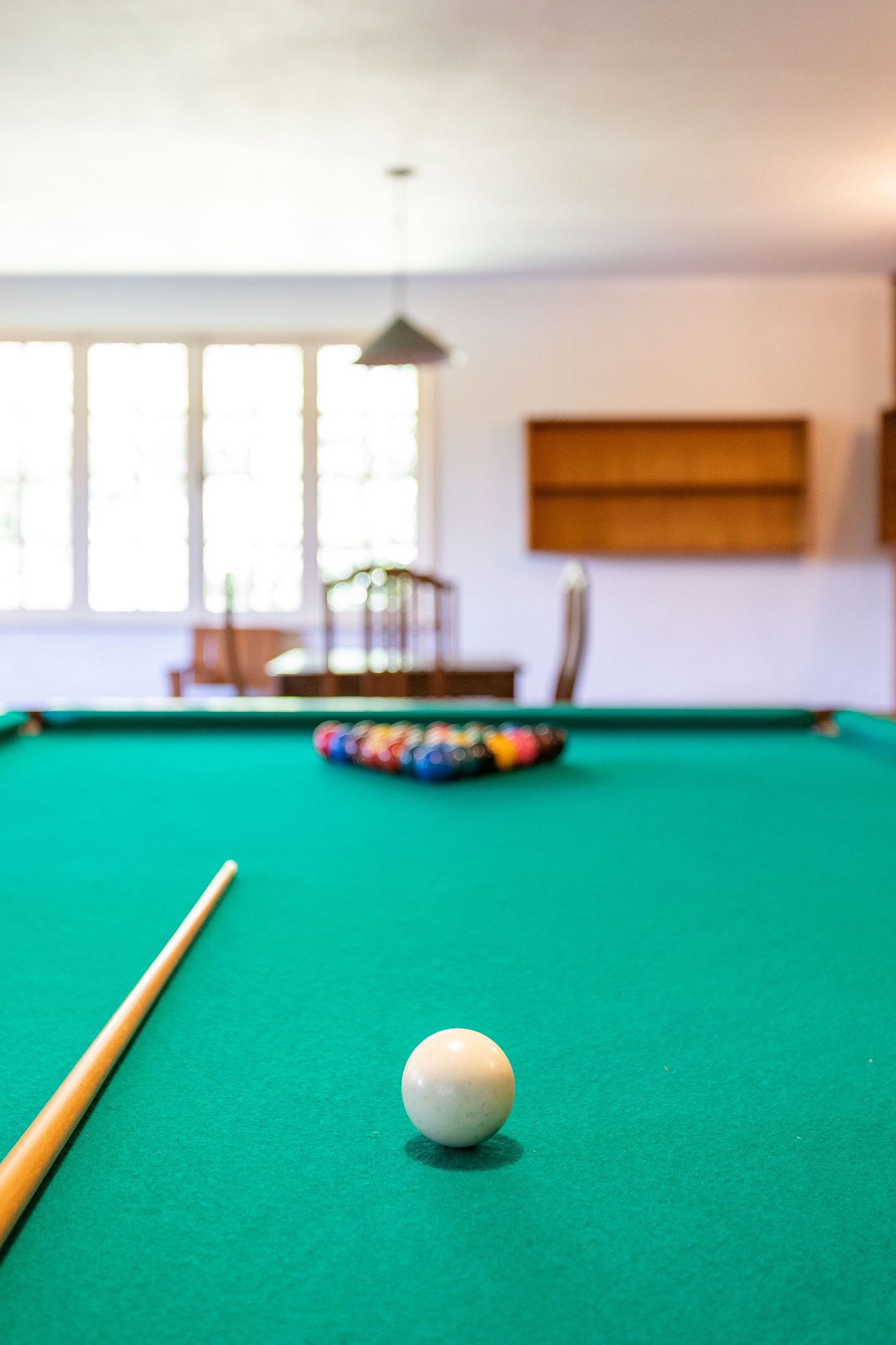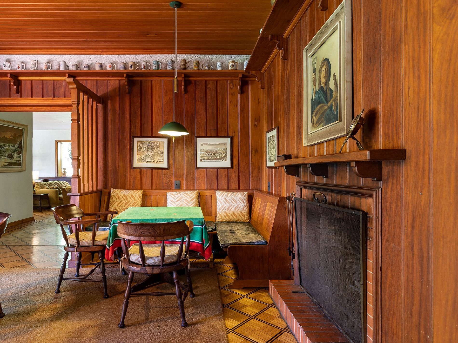 Spacious living room with sofas, game table, and bar, perfect for enjoying the mountain atmosphere.