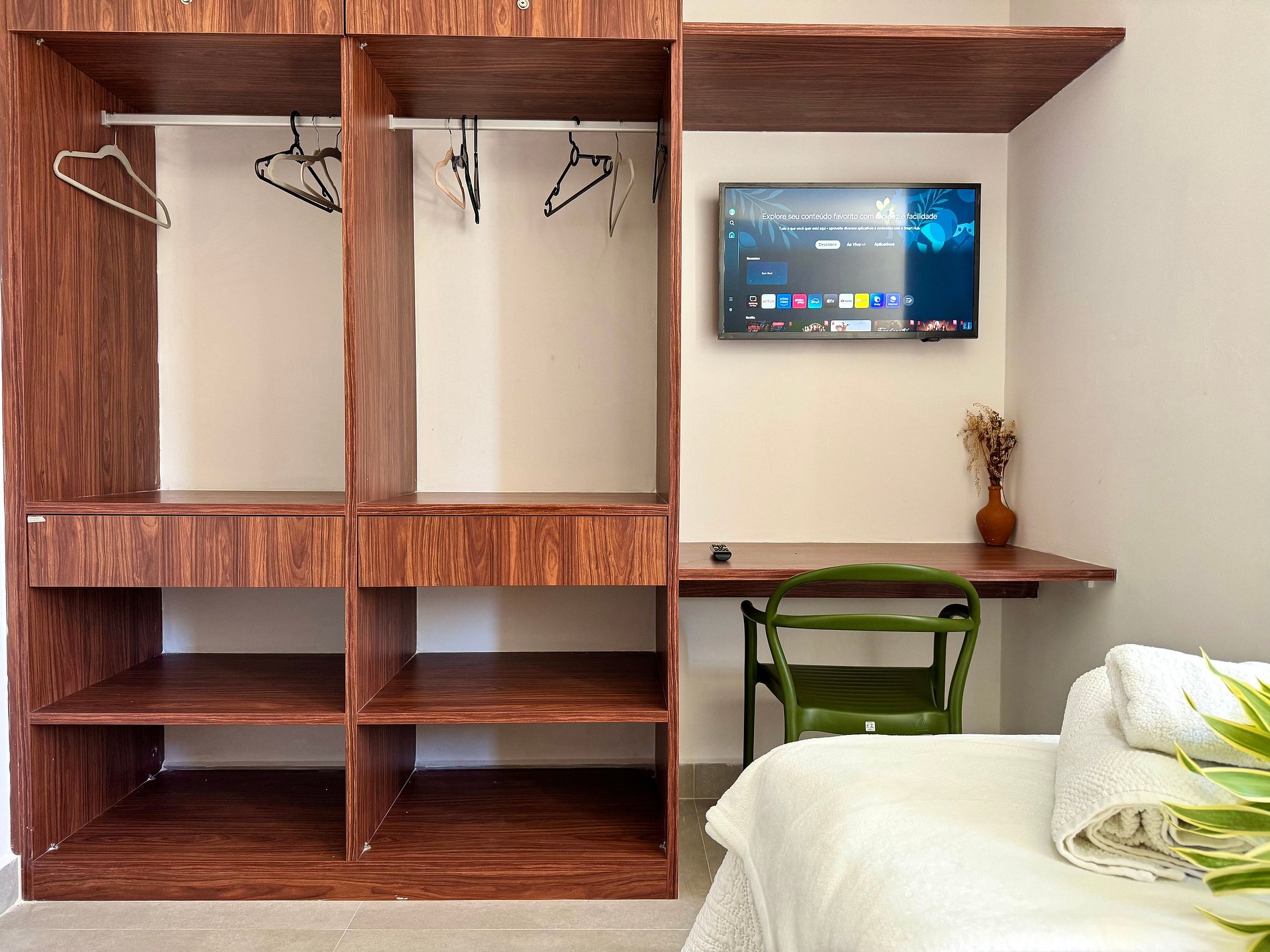 Bedroom 1: suite with 1 queen bed + TV + air conditioning