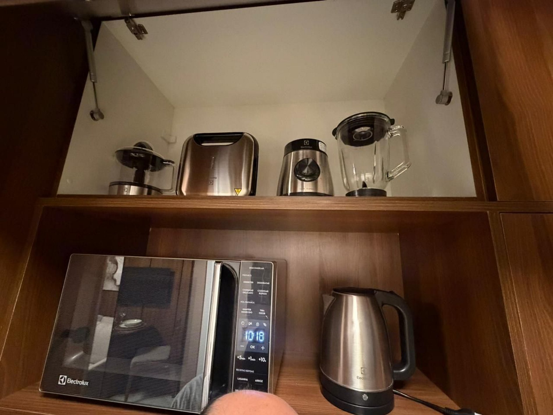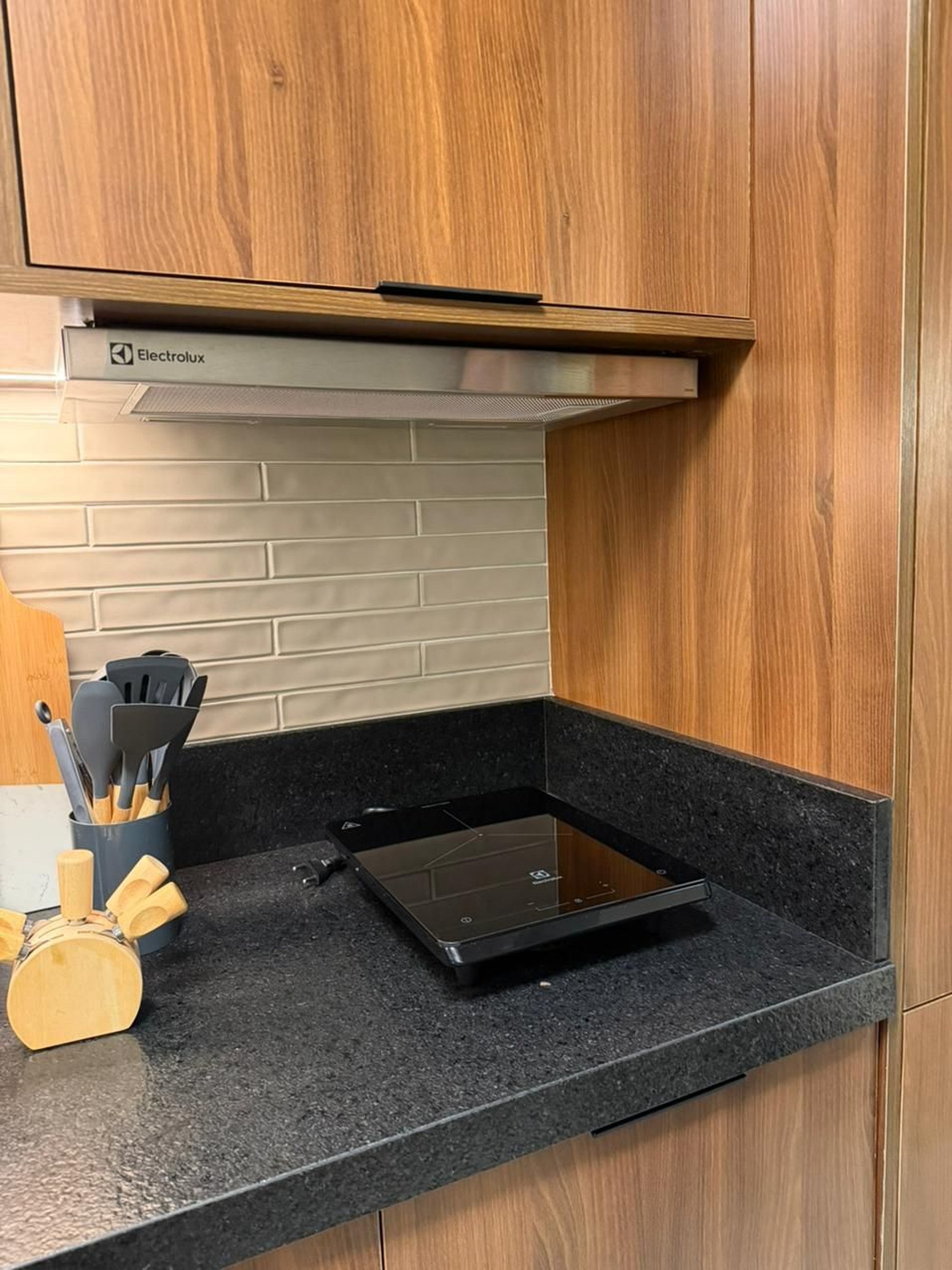 Equipped with cooktop, refrigerator, microwave, Nespresso coffee machine, electric kettle, blender, sandwich maker, water dispenser, as well as pots and essential utensils.