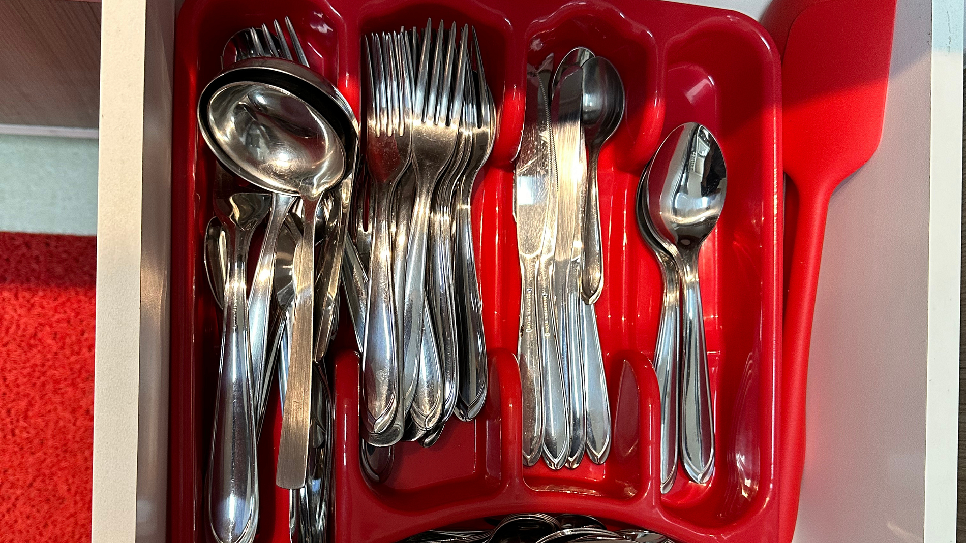 Bedroom 1: Features a double bed and a single bed, with an older air conditioner and a fan for added comfort on warm days.