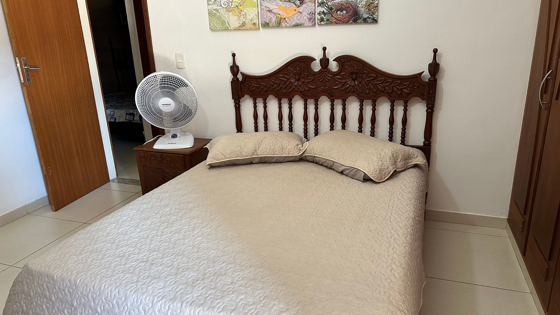 Bedroom 2: Contains a double bed and a single bed. This room does not have air conditioning but is equipped with a fan to keep it cool.