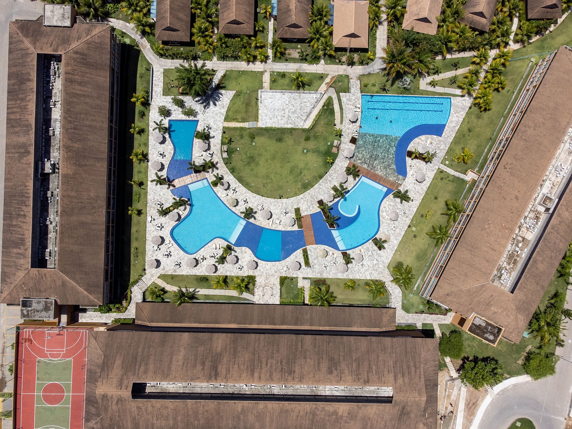 All this surrounded by the calm waters of Praia dos Carneiros. At Eco Resort Praia dos Carneiros: swimming pools, sports courts, a restaurant, and plenty of greenery by the sea.