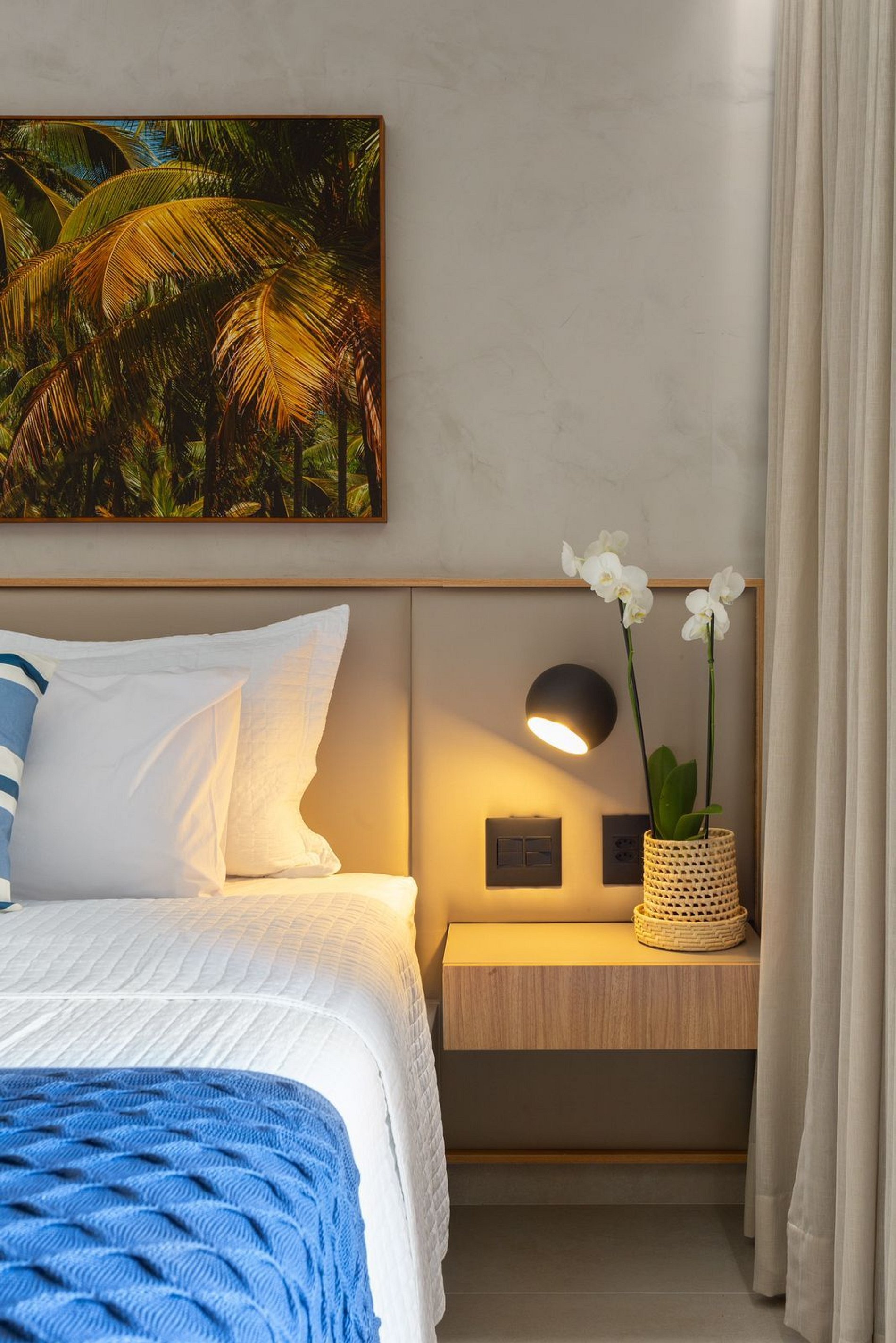Eu não gostei daquele aparador ao pé da cama de casal ficou muito apertado sem falar no risco de se machucar