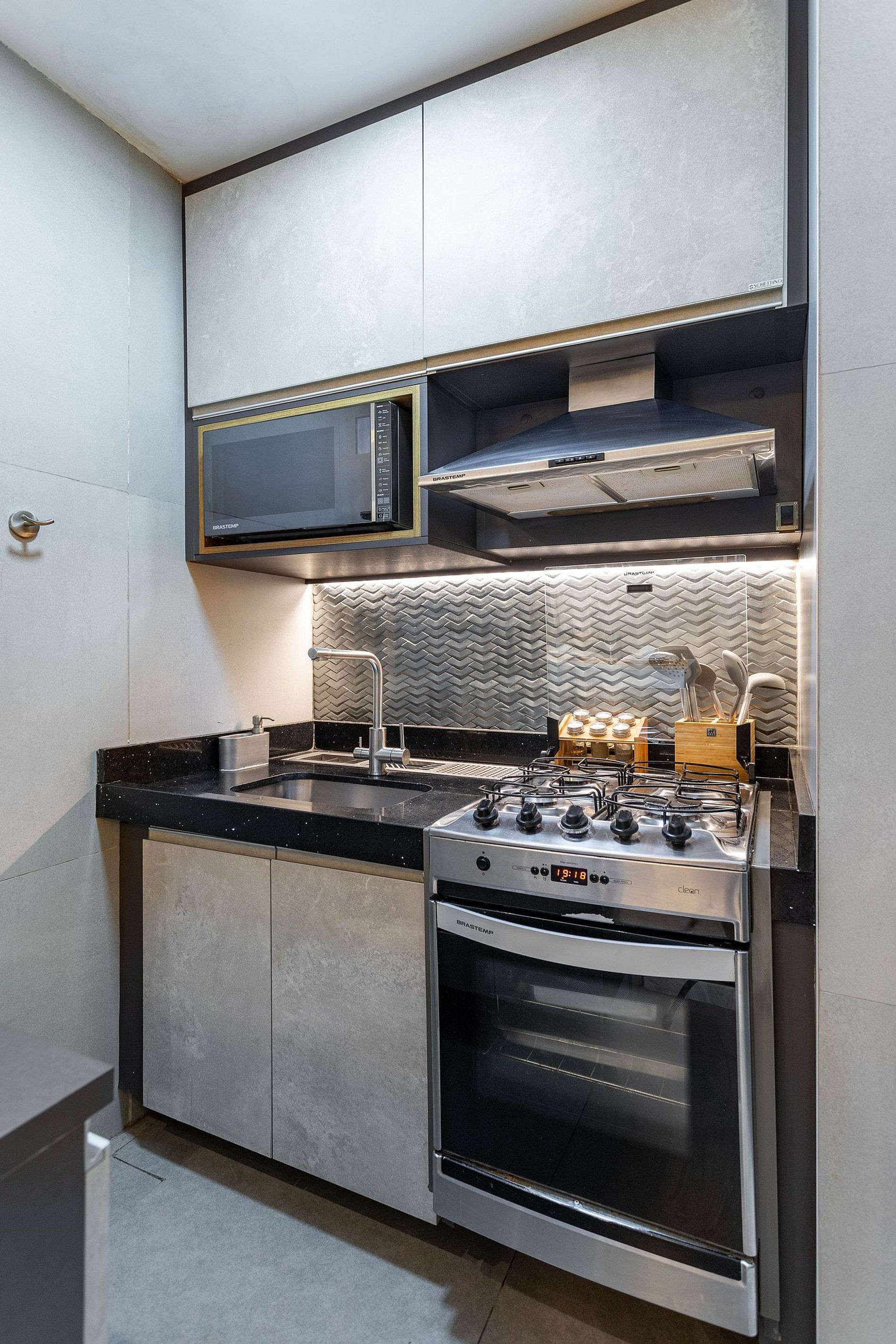 Cozinha equipada com utensílios essenciais