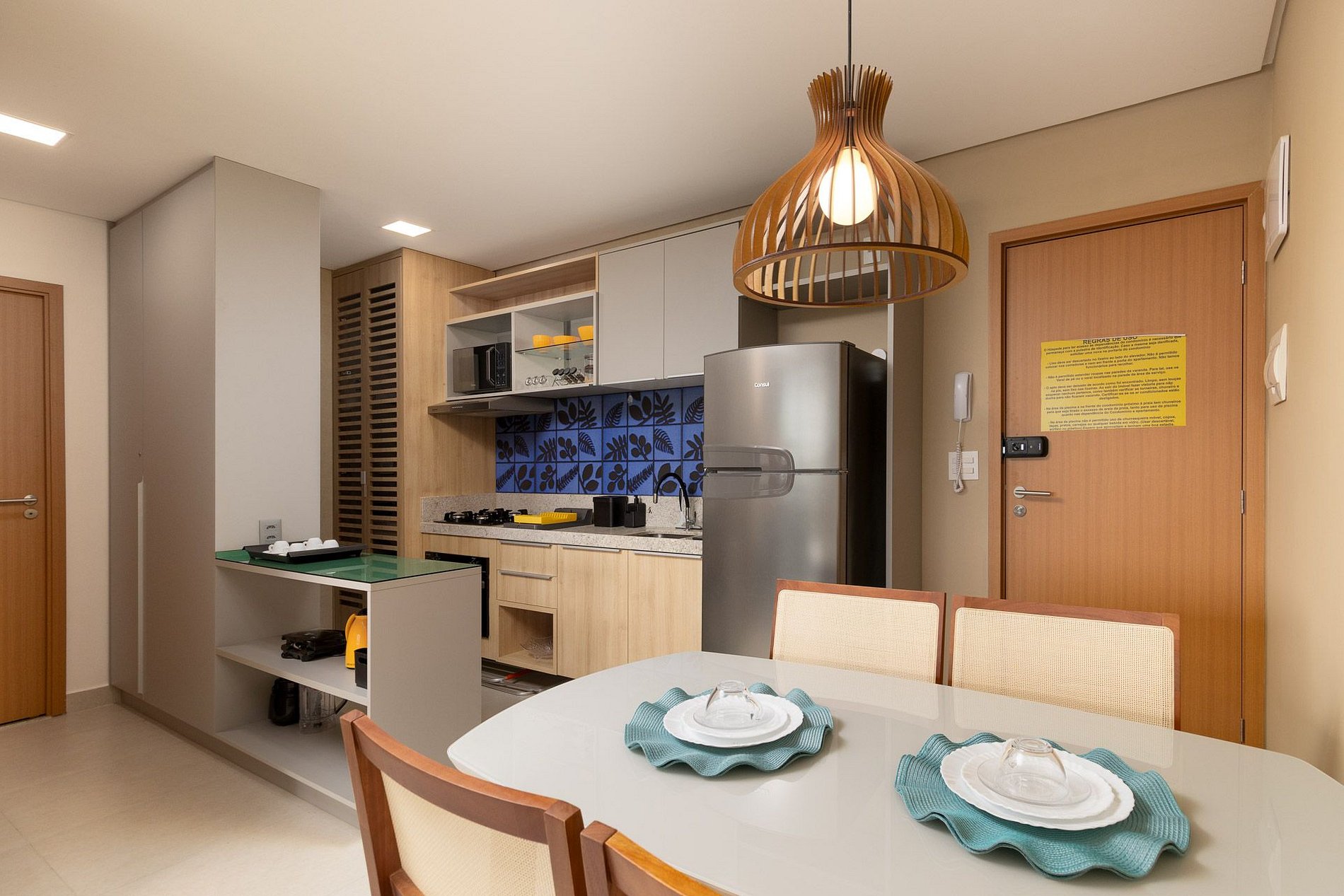 Condomínio excelente e o flat é bem novo, completo e acomoda muito bem!