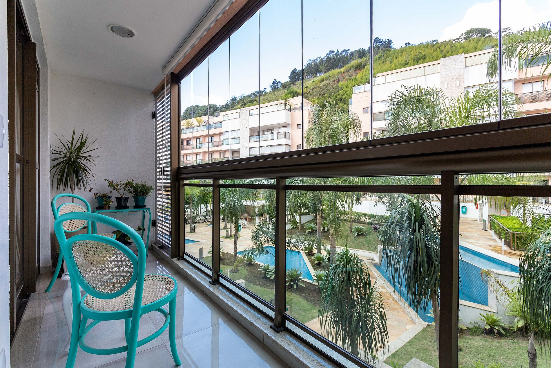Sala integrada com TV, Wi-Fi e varanda privativa