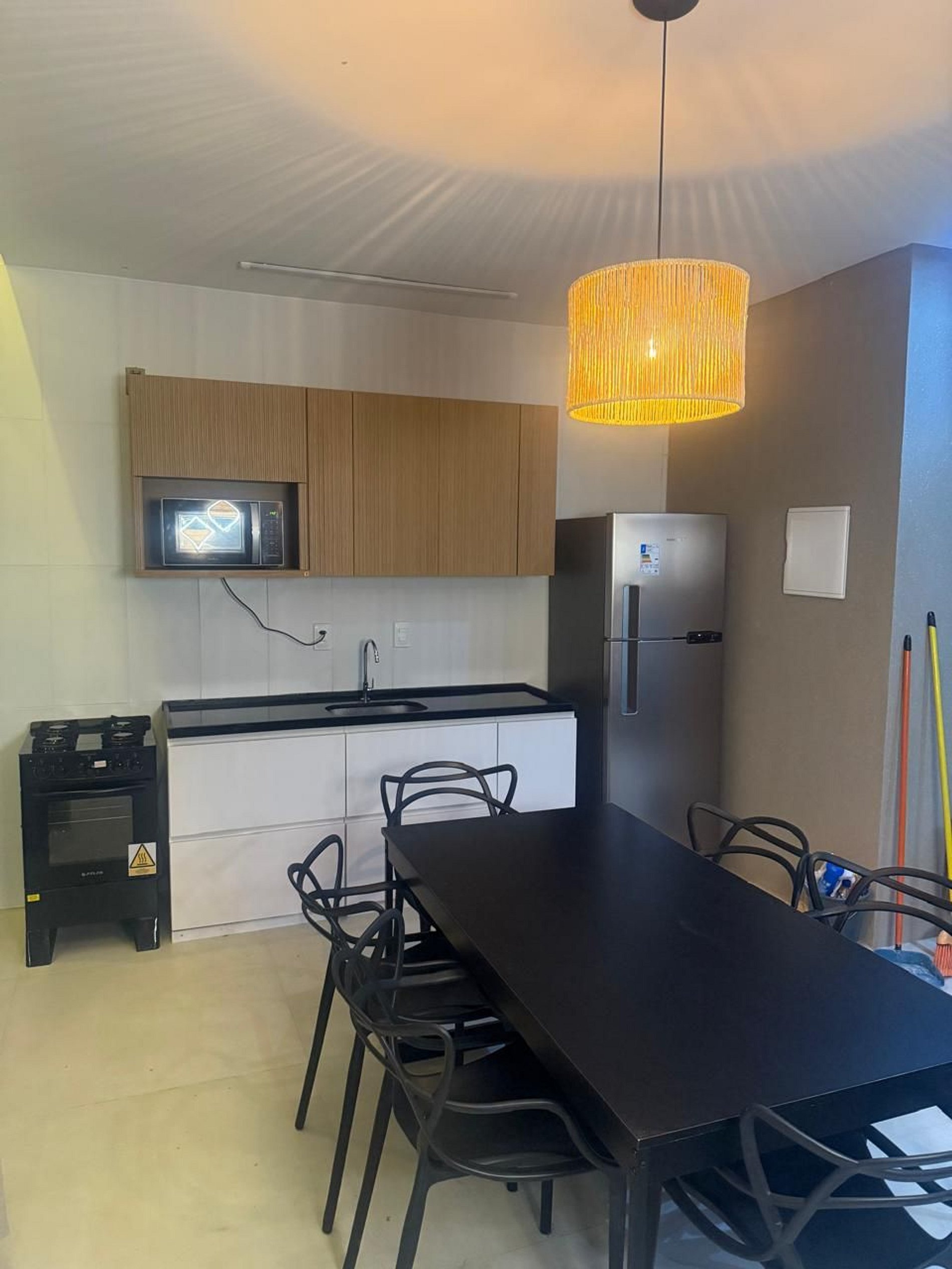 A cozinha é completa, com fogão, geladeira, utensílios e eletrodomésticos modernos. Ideal para preparar desde um café da manhã preguiçoso até aquele jantar especial. Tudo integrado à sala com Smart TV, Wi-fi, perfeita para relaxar depois da praia.