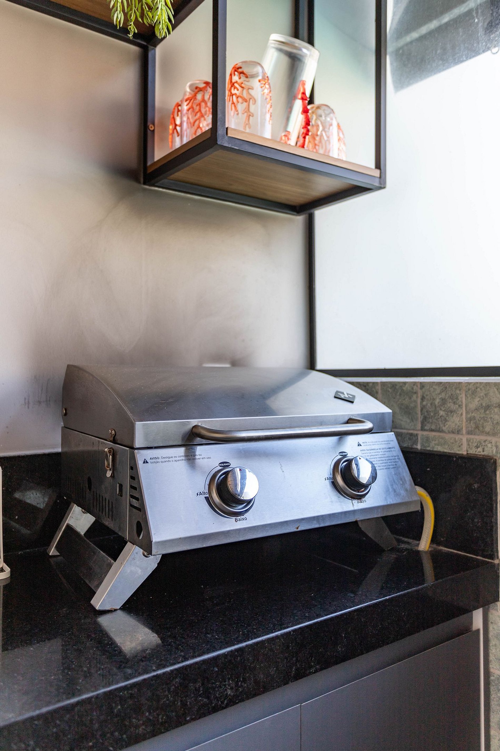 No nosso rooftop para você desfrutar de momentos inesquecíveis com uma TV de 50 polegadas e uma moderna churrasqueira a gás e geladeira!