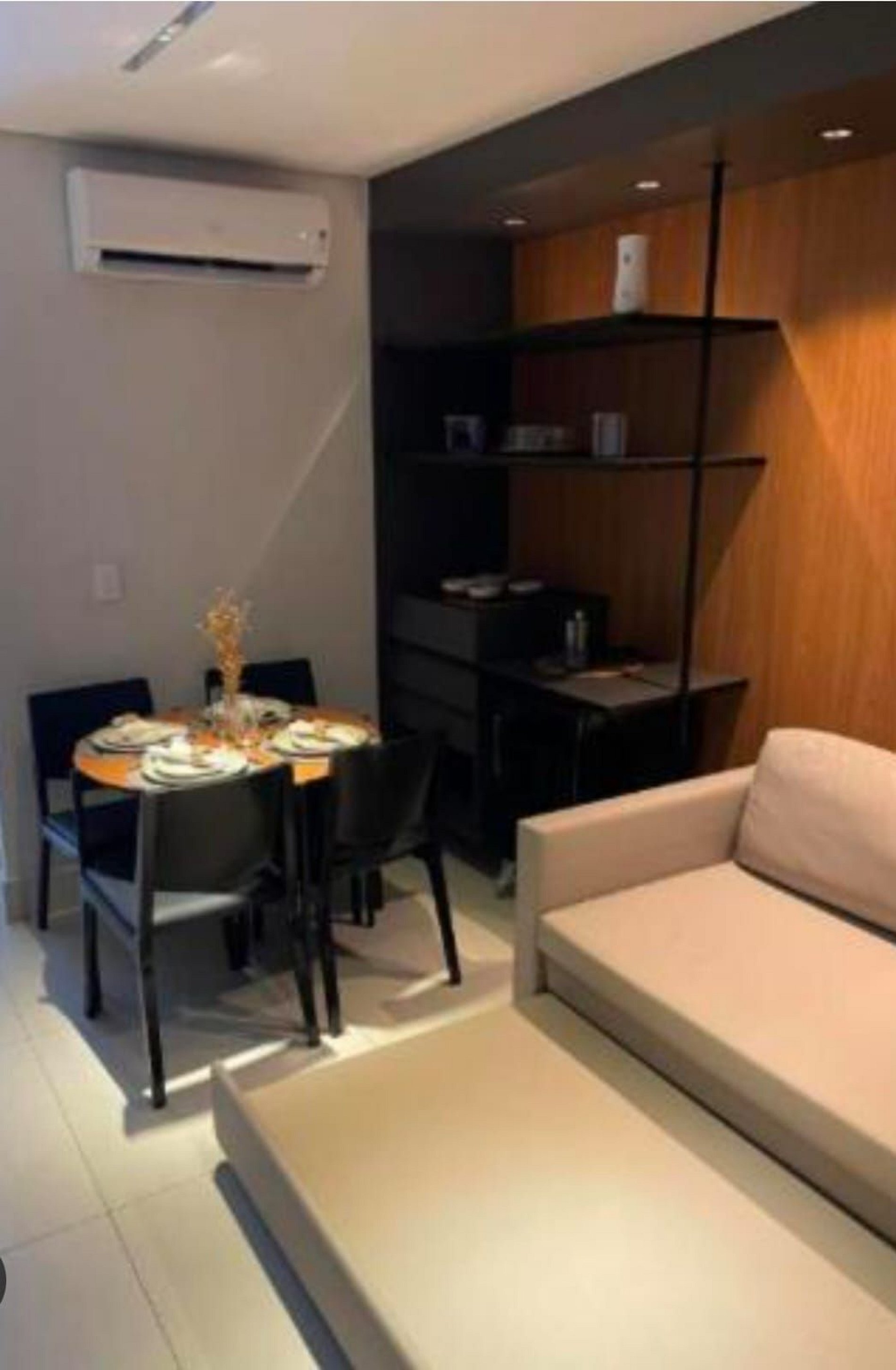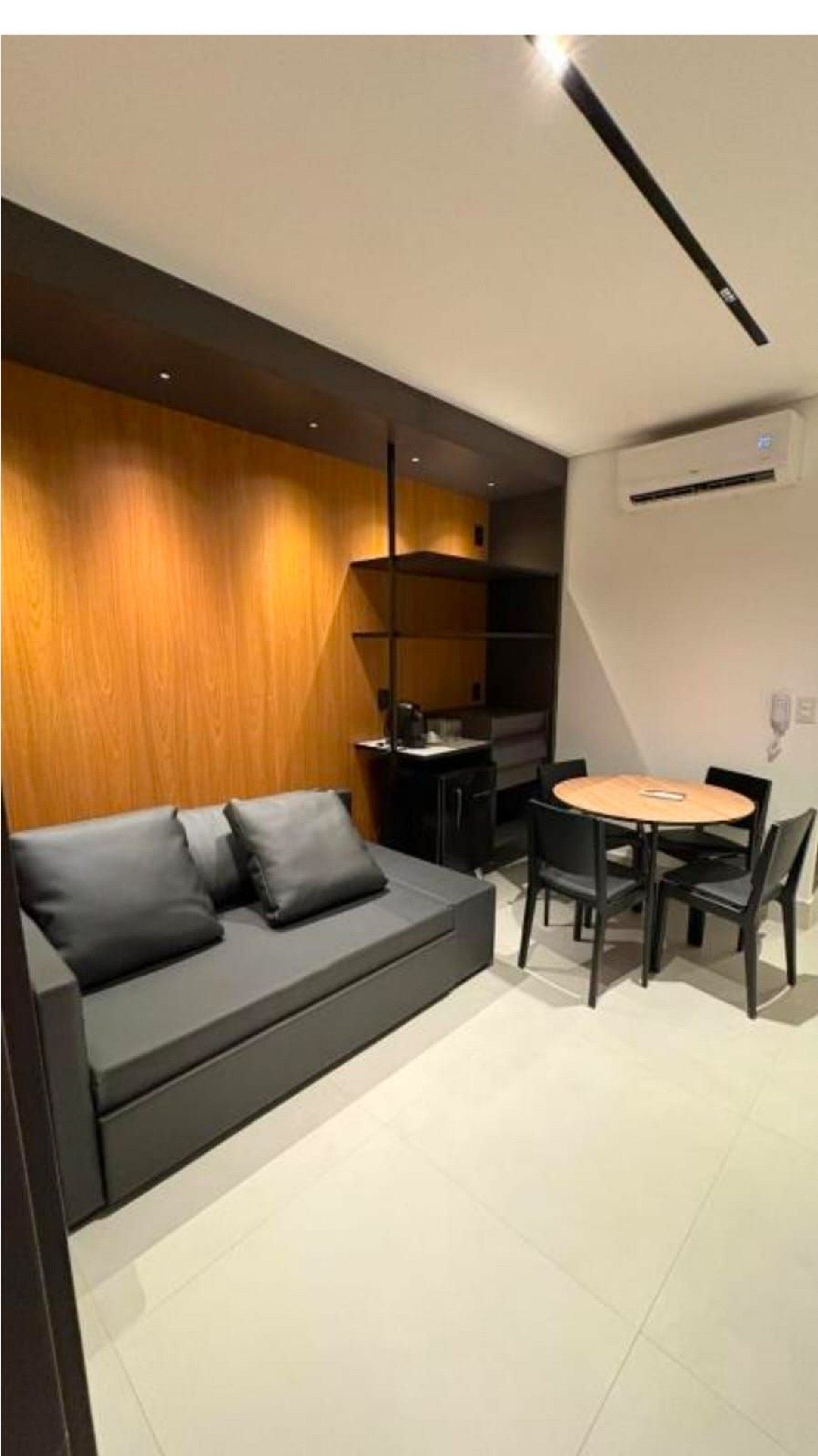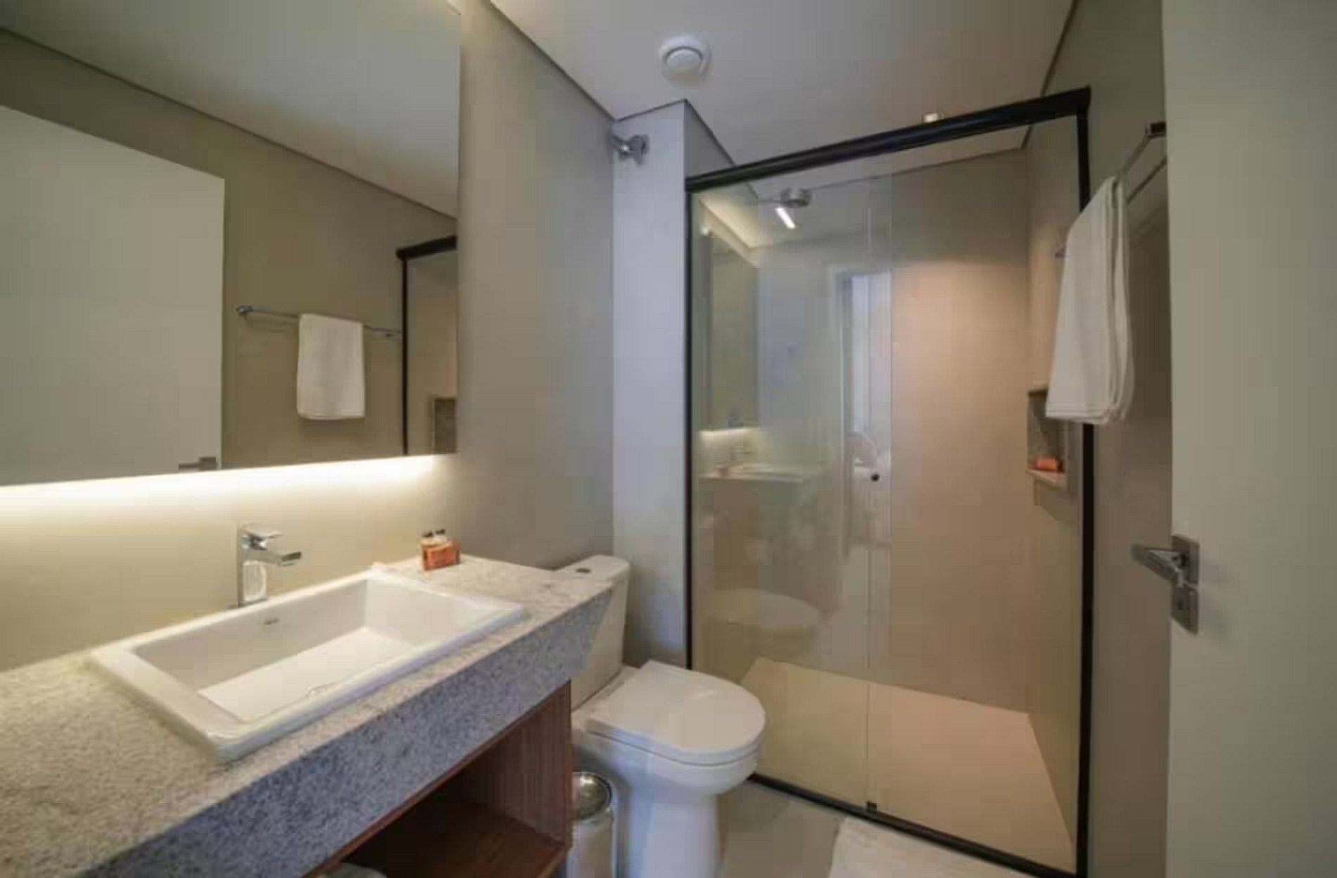 Acomoda até 4 pessoas, com quarto com cama queen, sala com sofá-cama, ambos com ar-condicionado, cozinha prática com frigobar e micro-ondas, além de roupas de cama e toalhas inclusas.