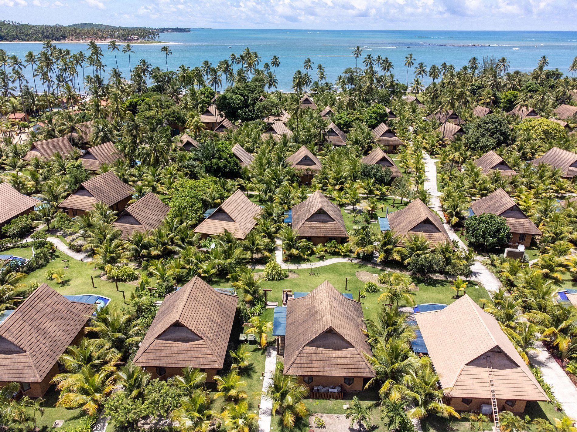 ECO RESORT - PRAIA DOS CARNEIROS: Uma joia à beira-mar, este resort residencial destaca-se pelo seu trabalho paisagístico deslumbrante e pela localização estratégica. Situado ao lado do icônico cartão postal da região, a igrejinha de São Benedito, o resort oferece não apenas uma estadia, mas uma experiência inigualável.