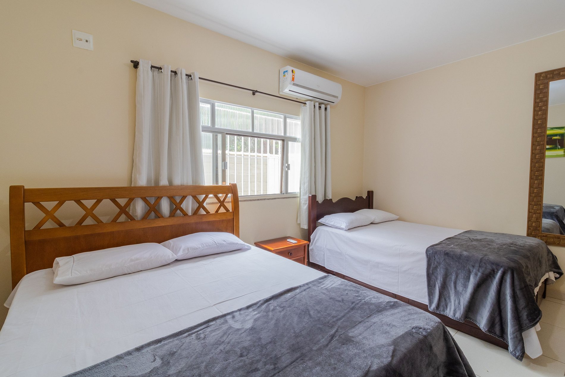 Quarto 1: 2 camas de casal + 1 cama de solteiro (acomoda 4 pessoas) com ar condicionado