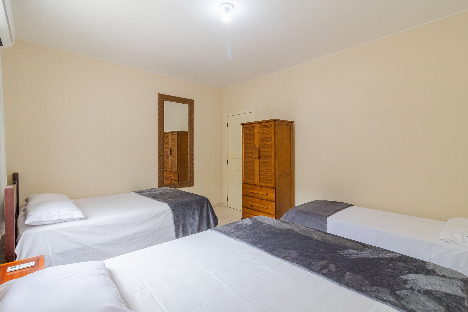 Quarto 1: 2 camas de casal + 1 cama de solteiro (acomoda 4 pessoas) com ar condicionado
