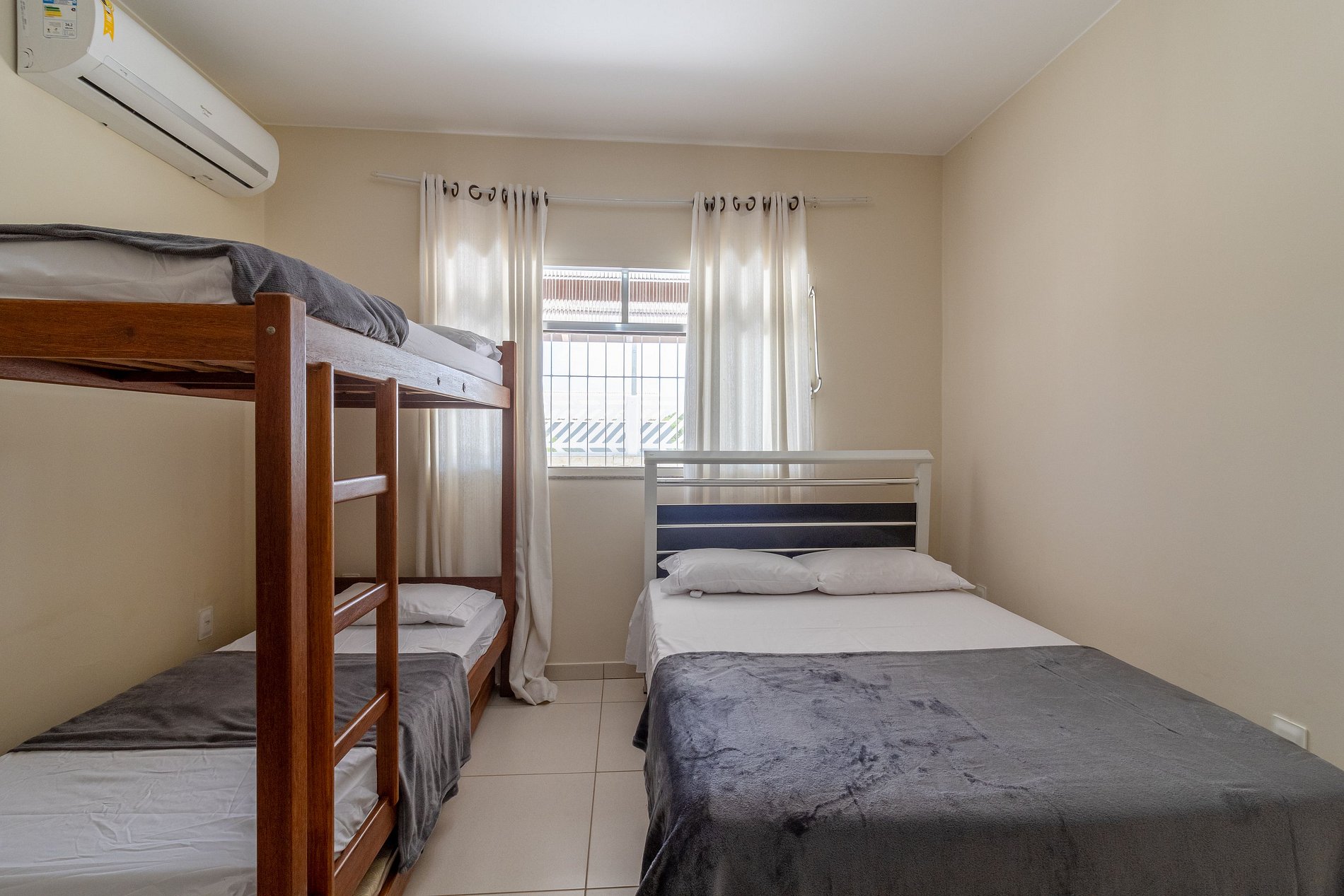 Quarto 3: 1 cama de casal + 1 beliche (acomoda 4 pessoas) com ar condicionado