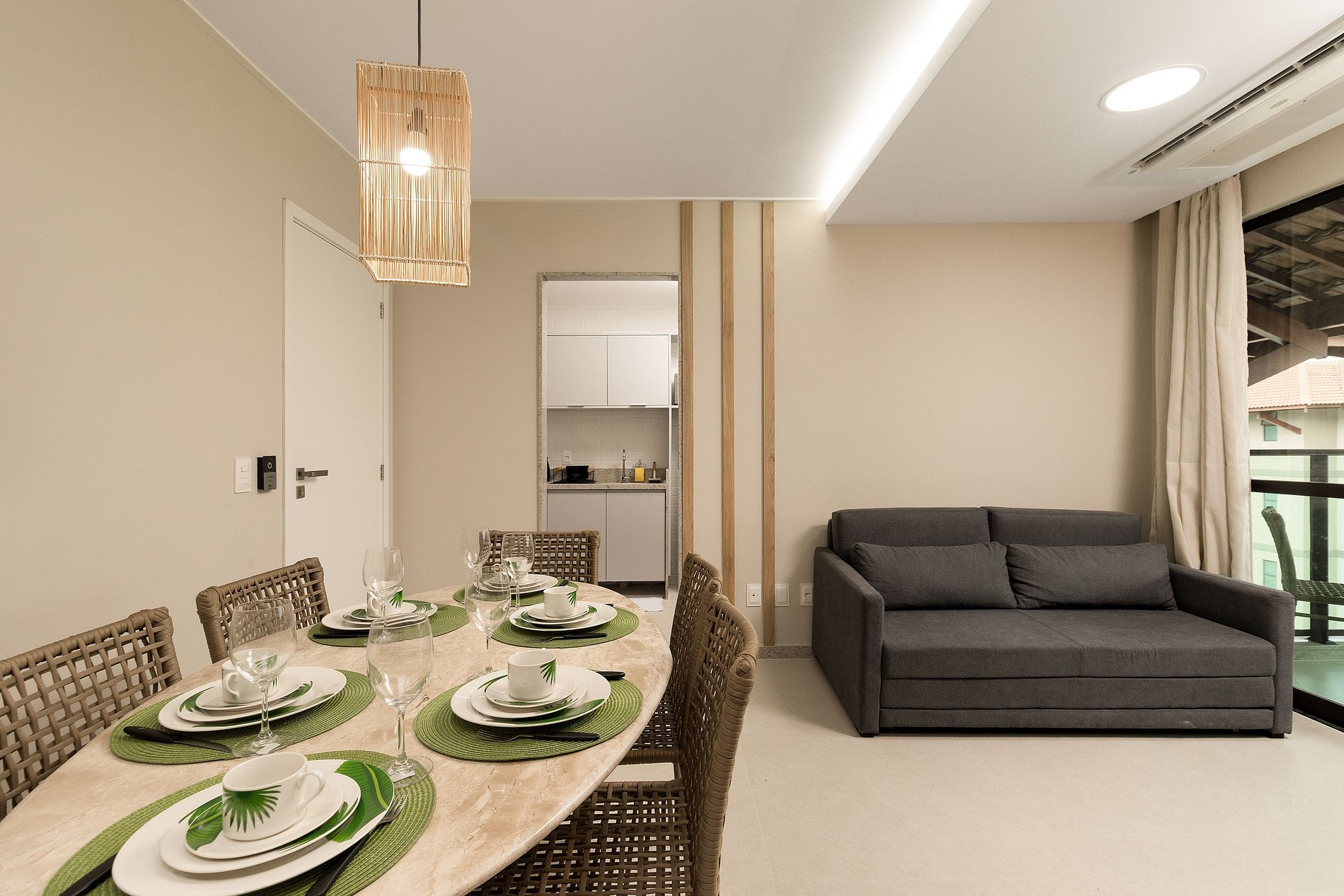 Sala de estar aconchegante com ar-condicionado, smart TV e Wi-Fi