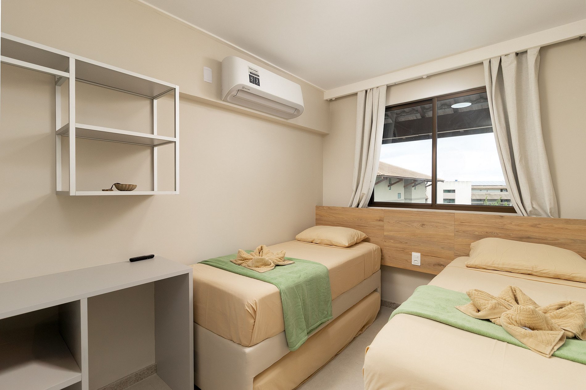 Suíte: cama queen + cama de solteiro com bicama, ar-condicionado