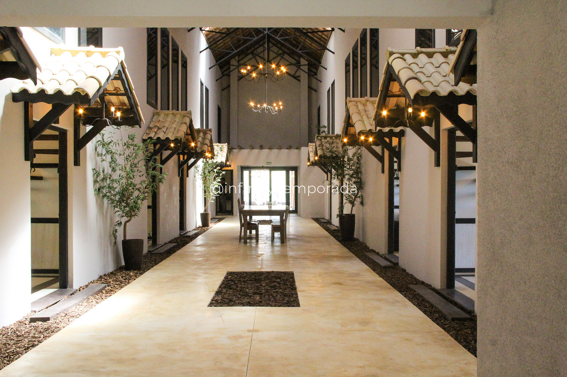 Com capacidade para até 40 hóspedes em 12 suítes. Estrutura com piscina, sauna, varandas, lounges e jardins, além de práticas sustentáveis.