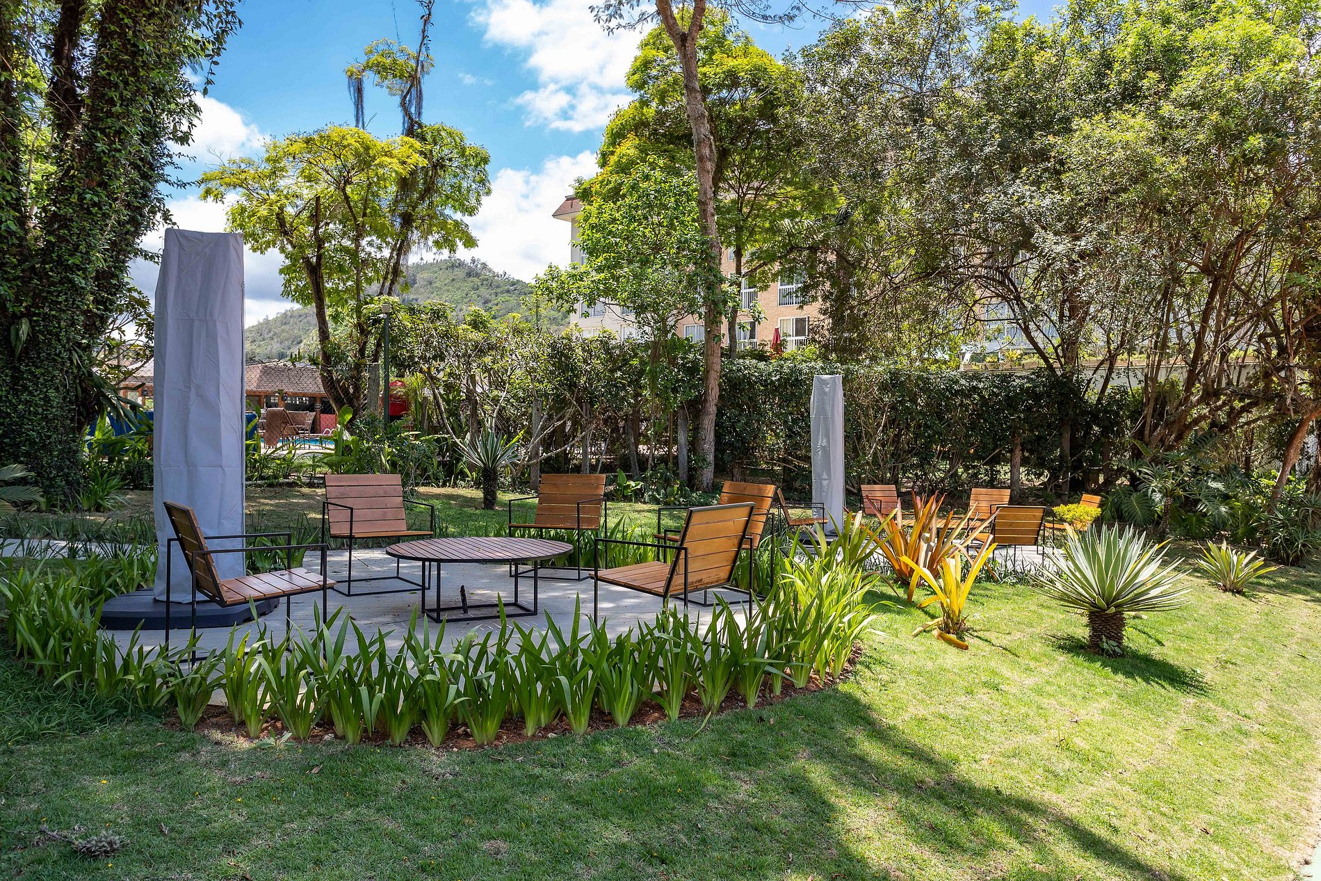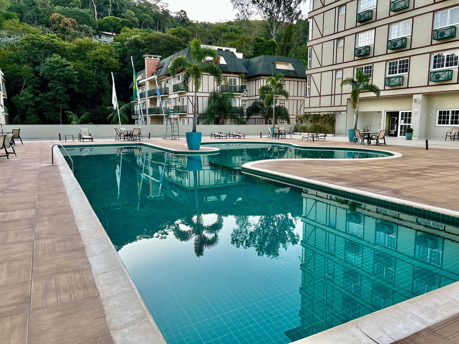 Aproveite piscina aquecida, hidromassagem, sauna, academia e trilhas na natureza.
