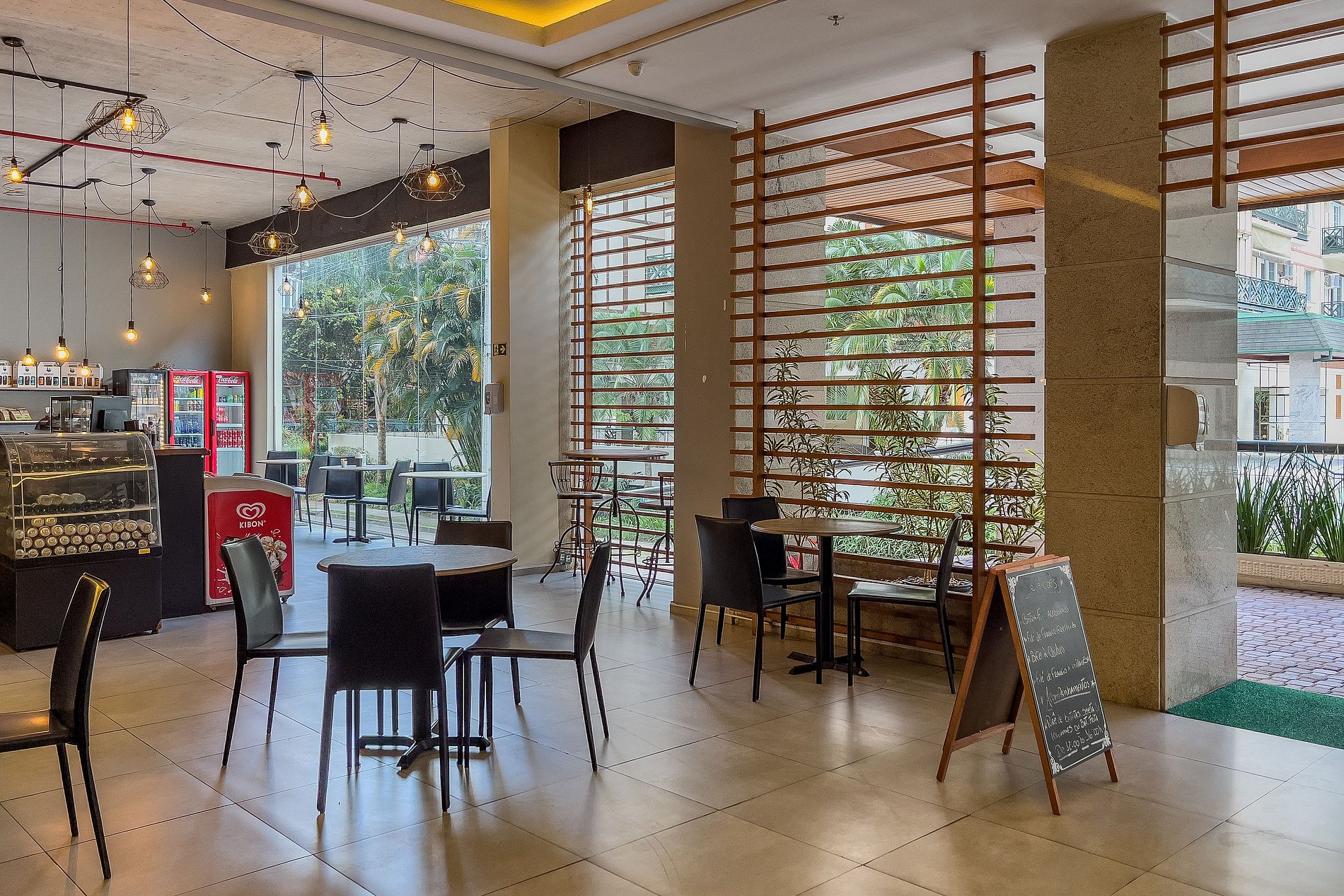 Não tomamos café da manhã. Na noite de sábado comi um pão de queijo bem gorduroso naquela lanchonete do lobby e vomitei muito de madrugada. Faltaram sacos de lixo para colocar os papéis toalha que usamos para limpar o chão do banheiro kkk. No mais, tudo ok.
