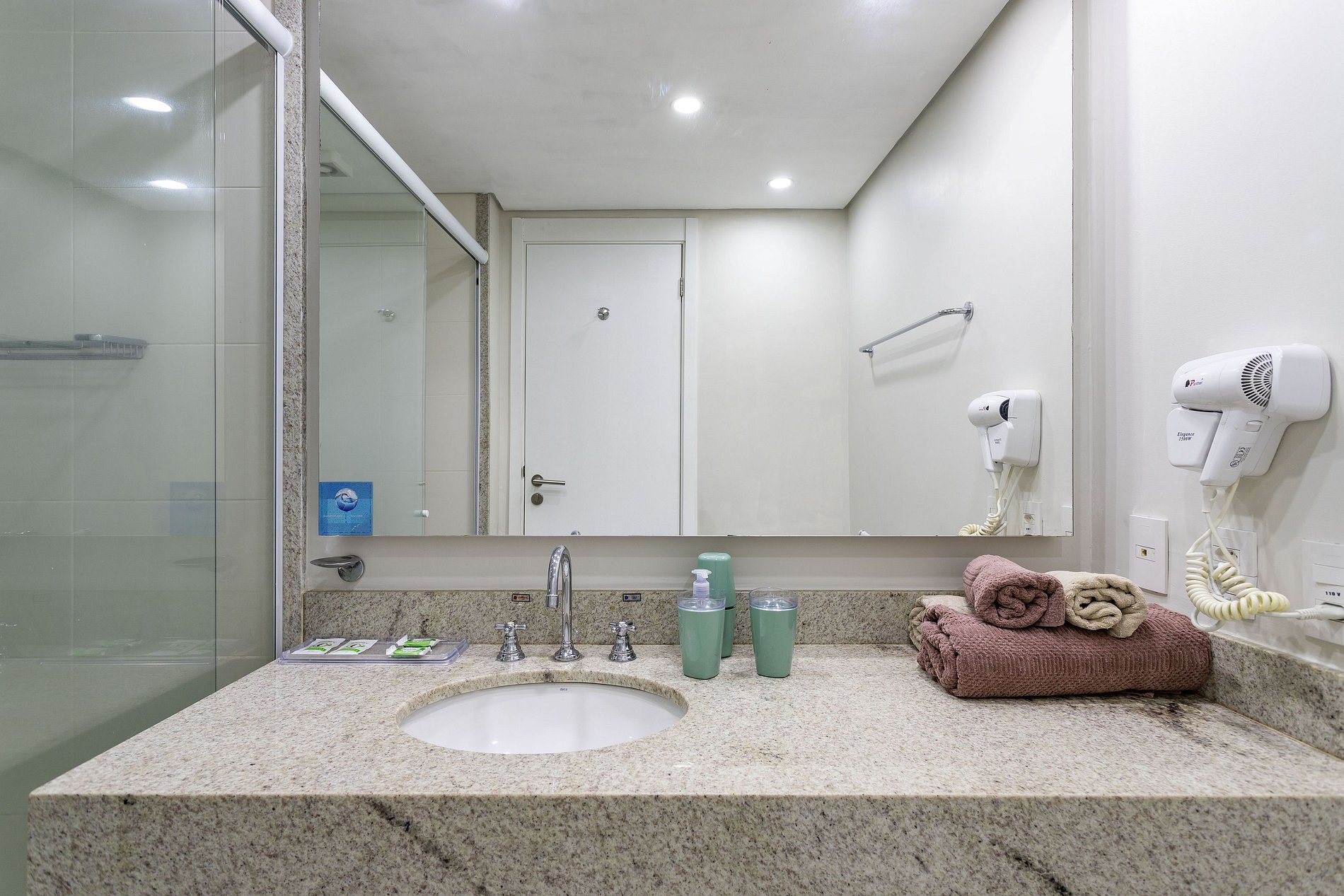 Limpeza impecável, quarto de ótimo tamanho, cama enorme e confortável, banheiro super espaçoso e limpo, não tenho nada a reclamar. Tudo perfeito!! Só uma observação é que tem duas piscinas no condomínio, e uma delas só pode ser acessada com laudo médico dos últimos 6 meses. Apartamento espetacular!!